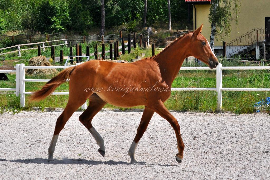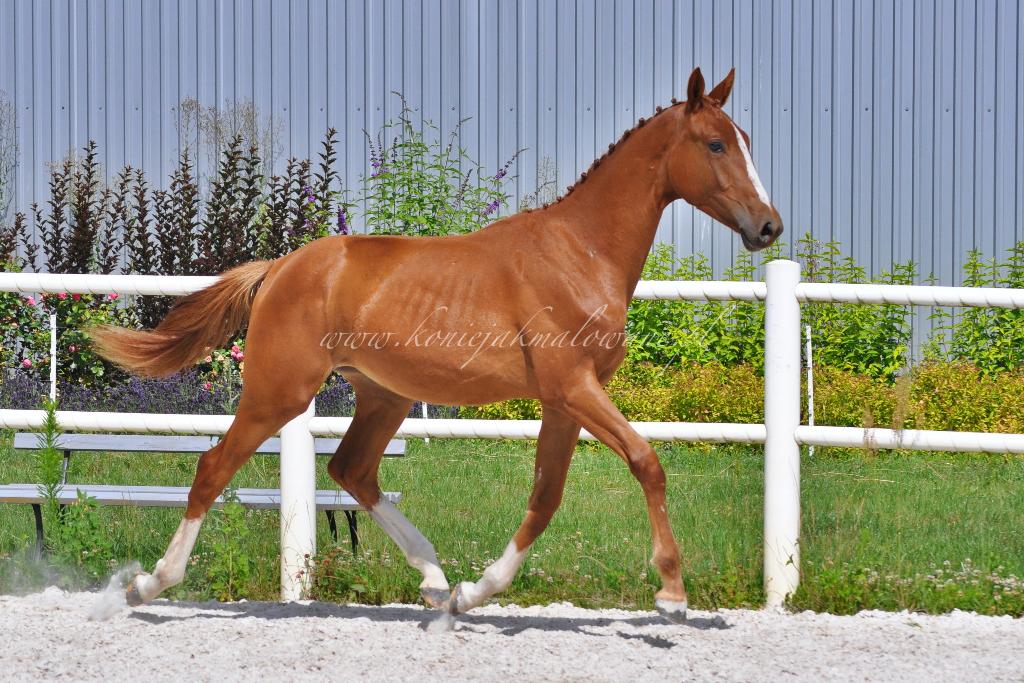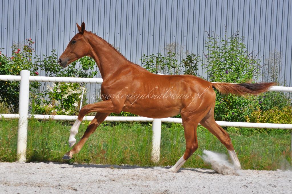 Goldfever Pilekaer (Totilas x Goldfinger VDT) to klaczka własności Cichoń Dressage. Zakupiona przez nich na zagranicznej aukcji przyjechała do nas na koniec zeszłego roku prosto z Dani. Klaczka jest żywym srebrem co przekłada się także na dużą dynamikę ruchu i ponadprzeciętne 3 chody. Naszym faworytem jest jej genialny galopem, który prezentuje nawet w najbardziej „nierównym” momencie swojego wzrostu. A wbrew wszechobecnej opinii o niskim potomstwie Totilasa, będzie koniem sporych rozmiarów. Cieszy nas bardzo kierunek w jakim rozwija się Goldi i miło nam, że otrzymując duże zaufanie od braci Cichoń, możemy na co dzień pielęgnować ten kiełkujący potencjał mistrzowski! Dziękujemy i podsyłamy Wam parę fotek.